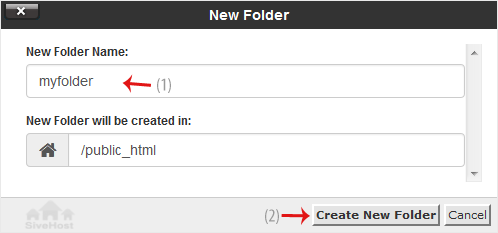 5. In the New Folder Name field, enter your folder name, such as my-folder. Then click on Create New Folder.