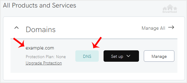 3. Under the Domains section. Click on DNS next to the domain you wish to manage.