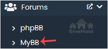 4. On the left side, locate the Forums category. Click on it and then on the MyBB link that appears.