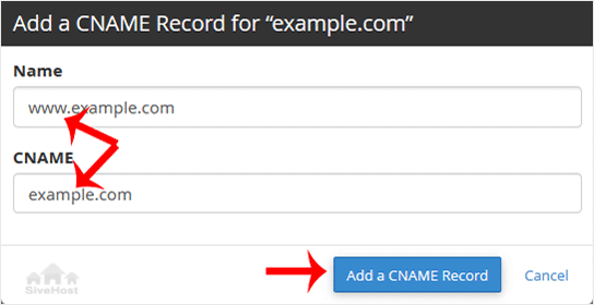 5. Now, click on Add a CNAME Record.
