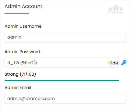 • Admin Username: Your new liveSite username (for security reasons, do not use the administrator or the admin username).